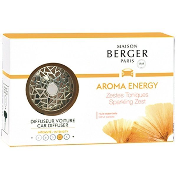 De Lampe Berger Auto Parfum Aroma Energie - Zestes Toniques - Sparkling Zeistis een vrolijke en energieke geur. Het is een ware ode aan vreugde, gedeeld geluk en creëert met zijn noten van grapefruit, muskus en citrus een energieke sfeer in iedere auto!