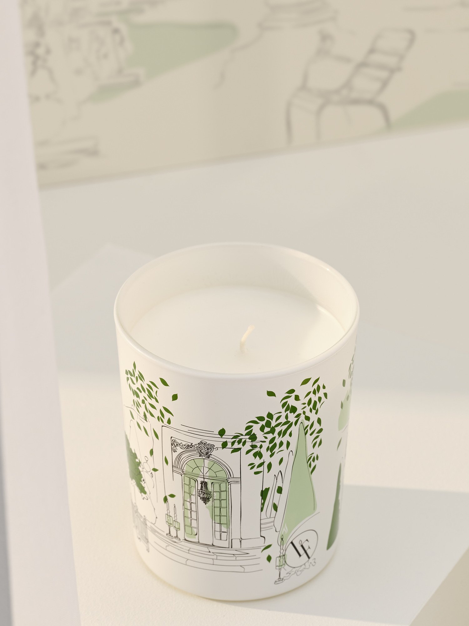 Laat je ogen verdwalen in de ontwerpen van deze French Garden geurkaars en raak in de ban van haar groene en vrouwelijke geur.