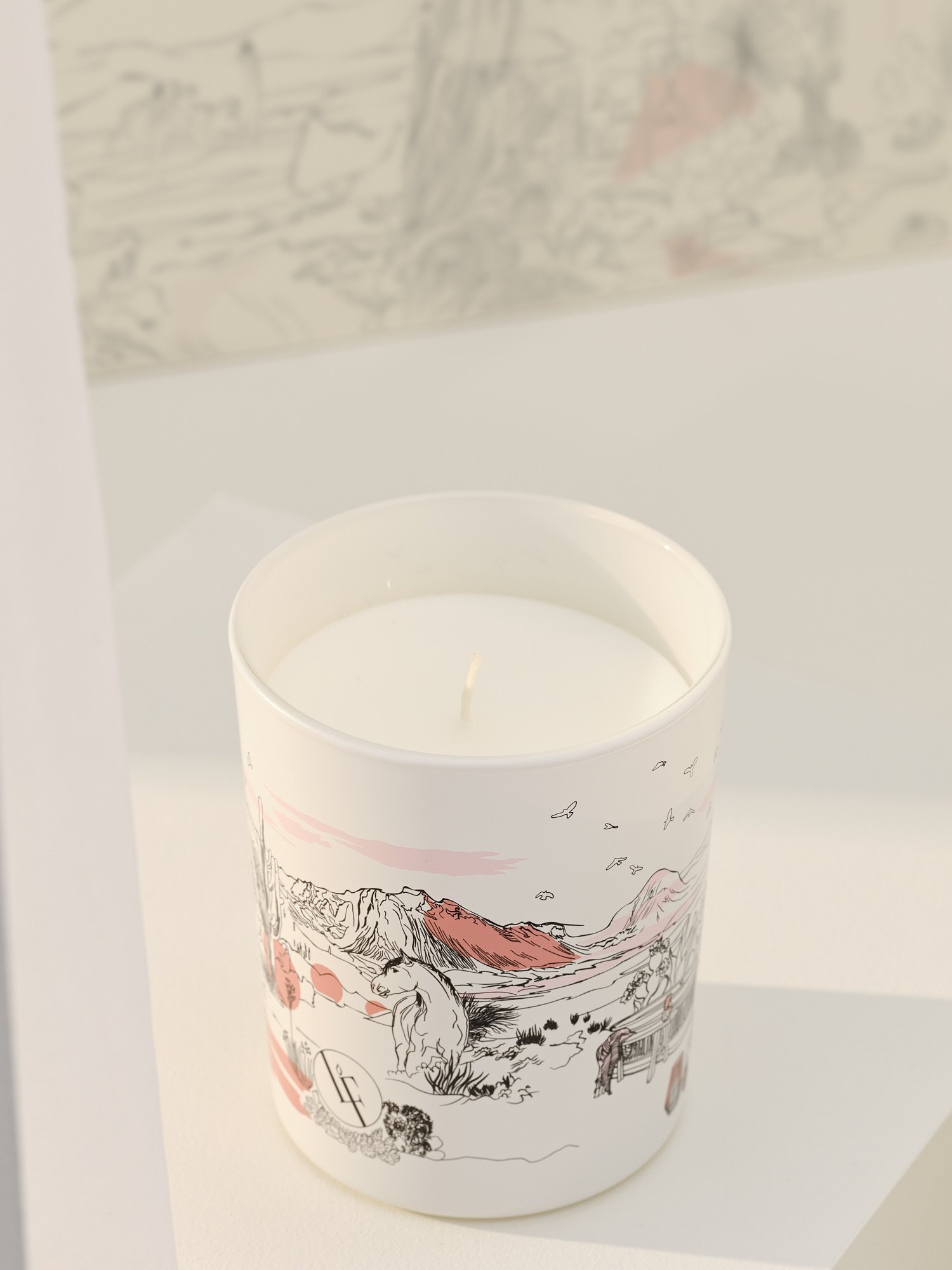 Deze geurkaars Jardin Dans le Désert neemt je mee naar het midden van wilde roze zandduinen met zijn bedwelmende oriëntaalse geur.