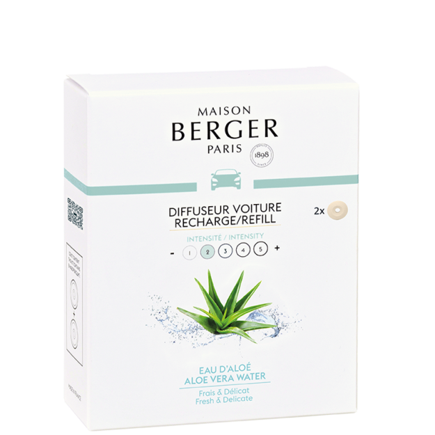 De Eau d'Aloé Car Diffuser Refills zijn een concentraat van plantaardig, bewerkt rond de zuiverheid van aloë vera voor een fris en licht resultaat. Deze vrij vrouwelijke geur onthult een zacht bloemig hart van lotus besprenkeld met een paar tonen van waterlelietje-van-dalen. Witte musk geeft elegantie aan de compositie die eindigt op een zachte houtachtige sluier van sandelhout. Misschien geeft dit parfum je schoonheid en een lang leven, zoals in sommige Egyptische overtuigingen, wie weet? Deze Eau d'Aloe Car Diffuser Refills passen zich aan alle Maison Berger Paris autodiffusers aan voor uw grootste plezier. Uw reizen worden dan subtiel geparfumeerd met een kristallijn aromatisch facet. Met zijn lage intensiteit gelijk aan 2 van de 5, dit parfum is echt niet erg bedwelmend en het verwisselbare keramiek stelt je in staat om de verspreiding ervan enkele weken te vernieuwen. Ontdek snel deze poëtische geur die zowel aquatisch als plantaardig is.