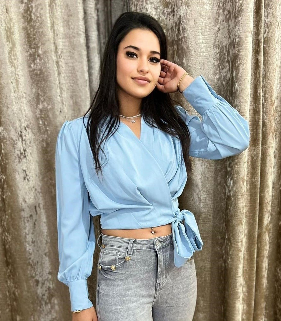 Deze Shelly Blouse is gecombineerd met Queen of hearts Gray jeans € 44,95