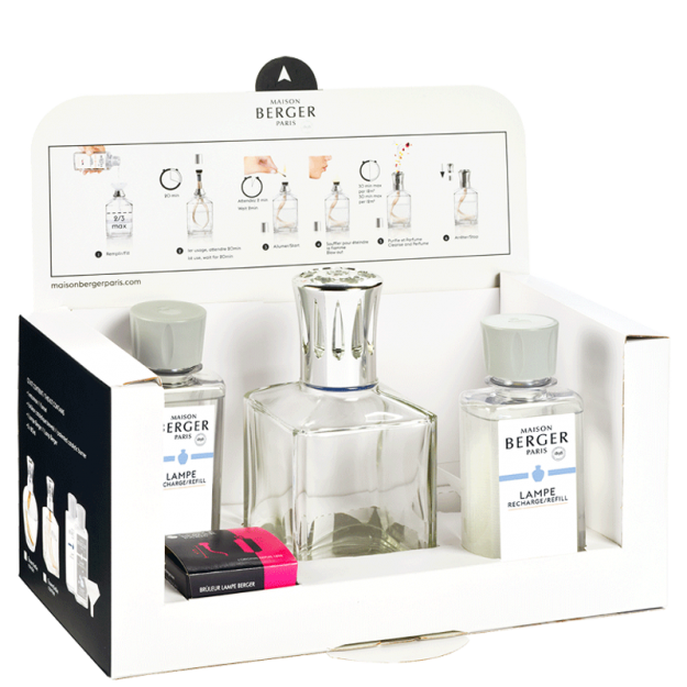 De Box Berger Lamp Essentielle Carrée is terug van weggeweest, met deze kennismakingsset, een alom bekende en gewaardeerde bestseller. De vierkante vorm geeft het geheel stevigheid en structuur. De sobere, doorzichtige houder laat zien hoe hoog het niveau binnenin is. Deze box bevat verder ook twee navullingen voor de Berger Lamp. Het parfum Air Pur - Neutre Essentiel zuivert de lucht van uw interieur, maar parfumeert deze niet. Terwijl het parfum Vent d’Océan een waterachtige geur verspreidt. De hartnoot onthult al zijn ontloken plantaardige noten die benadrukt worden door fruitige, zoete en exotische geuren. Een geïmproviseerde cruise op de golven, een uitstapje om eindeloos van te genieten. Met deze Box Berger Lamp Essentielle Carrée nodigt Maison Berger Paris u uit dagelijks een paar minuten uit te trekken om uw huis te parfumeren en kennis te maken met alle voordelen die het katalysesysteem biedt. Zuiver, parfumeer en verfraai uw huis met dit eenvoudig te gebruiken geurmiddel.
