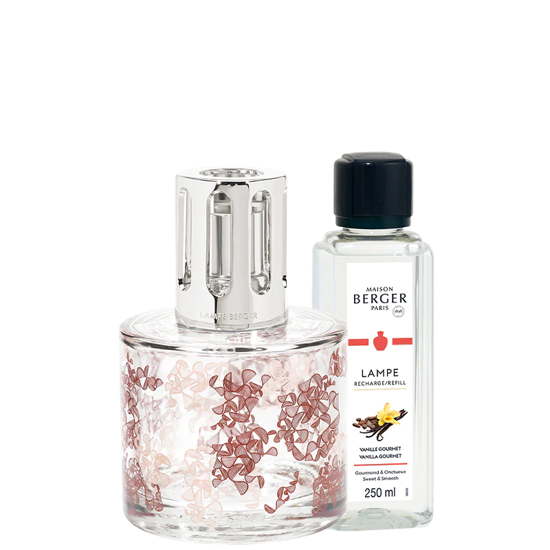 De delicate patronen op de Pure Ribbon Lampe Berger Gift Set lijken op dansende linten. Deze eigentijdse lijnen voegen een dynamische verfraaiing toe in roodachtige tinten die het transparante glas compenseren om een ​​warme, kleurrijke toets aan uw huis te geven. Met zijn gestalte en glans voegt de rechte zilverkleurige metalen dop een statige versiering toe. Gebruik deze lamp met de geur Vanilla Gourmet uit de set om je huis te zuiveren en te parfumeren. Gastronomische, aromatische tonen van rum verlevendigen de subtiele zoete akkoorden van vanilleboon en de poedervormige aroma's van tonkaboon. Deze rustgevende compositie zorgt voor een heerlijke sfeer die hart en ziel verwarmt!