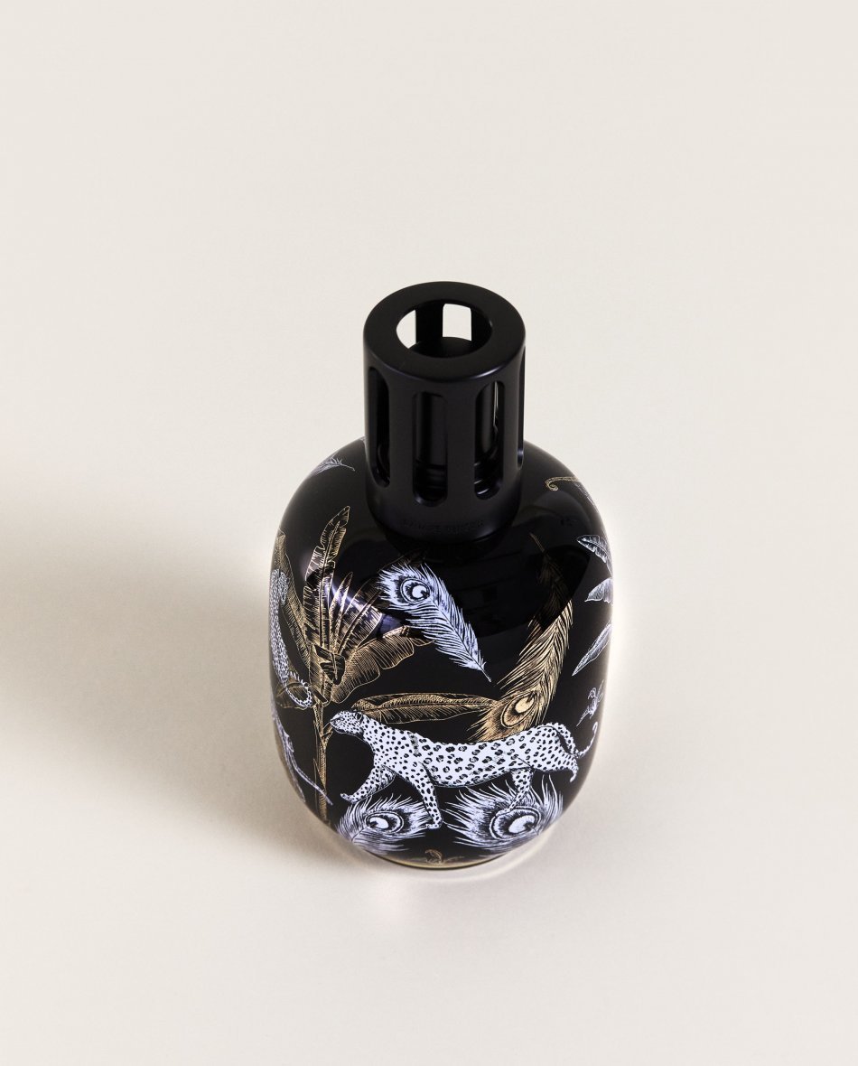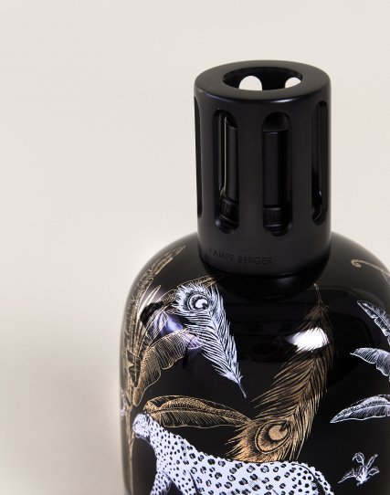 Exotisch en verfijnd, bij de Lampe Berger Jungle Noire draait alles om zijn gedurfde ontwerp! Gemaakt van porselein en bedekt met zwart email, zelf versierd, is de katalytische lamp gemoderniseerd. De verstrekte en precieze patronen, gecoat met wit en goud, benadrukken een vakkundig spel van proporties. Pauwenveren en savannedieren schitteren met pracht en praal, waardoor je een echt gevoel van verandering van omgeving krijgt in het hart van een weelderige omgeving. Het gesatineerde zwarte frame maakt het geheel compleet met zijn subtiele en elegante glans. Deze Lampe Berger Jungle Noir brengt door zijn opvallend realisme meteen stijl in je kamer. Meng het met een paar plantaardige en natuurlijke accenten om de perfecte decoratiecombinatie te krijgen. Om het avontuur op te fleuren,